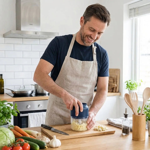 Le MINI MASHER est le mini hachoir Ă©lectrique qui vous suivra partout. Rechargeable et compact, il est idĂ©al pour les petites cuisines ou les voyages. PrĂ©parez vos condiments en un clin d'Ćil !